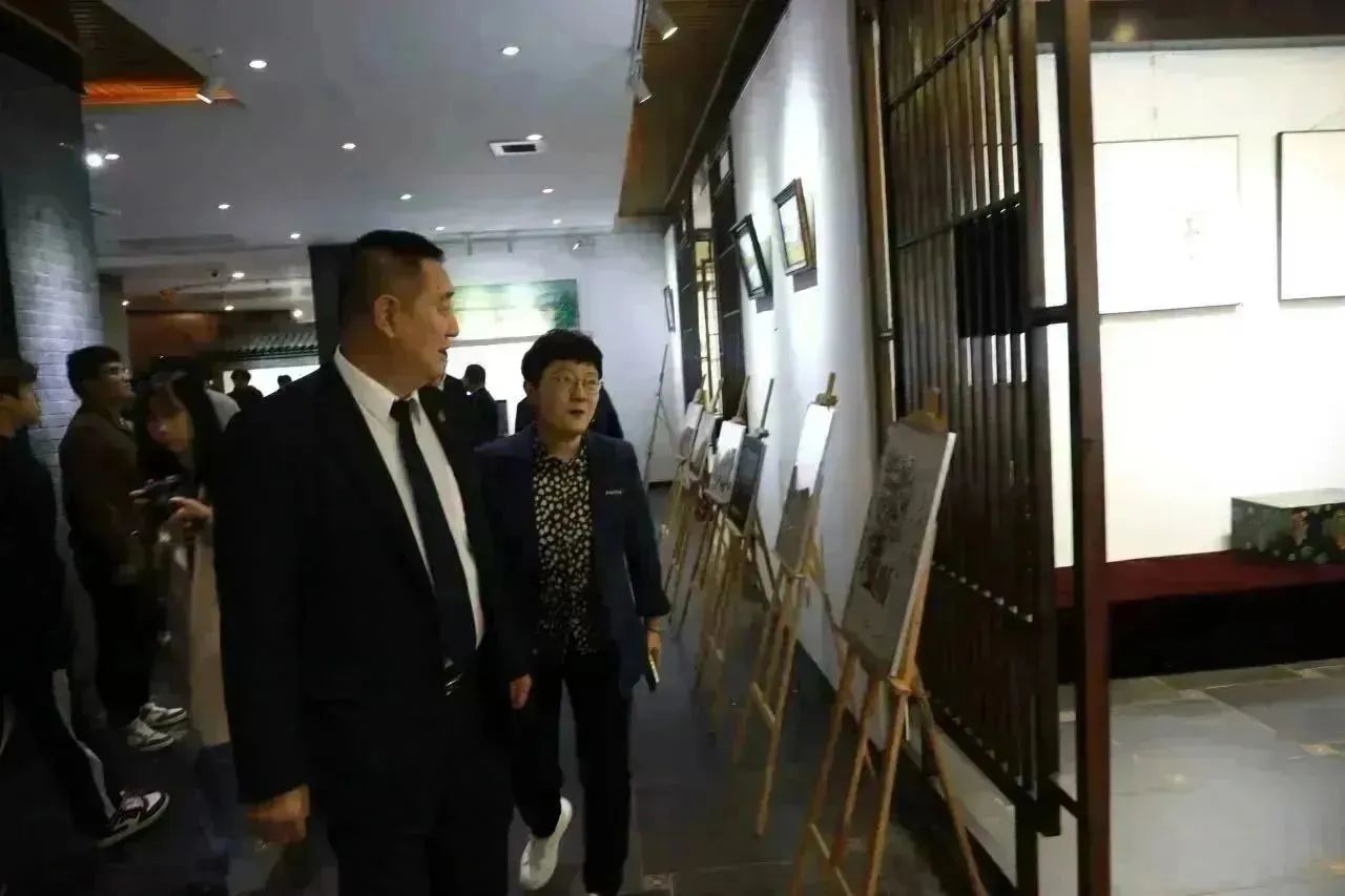 开幕式后,全体与会人员一同参观了展出的书画摄影作品。大家时而驻足观看,时而凝神思考交流讨论,频频举起手机拍照留念。