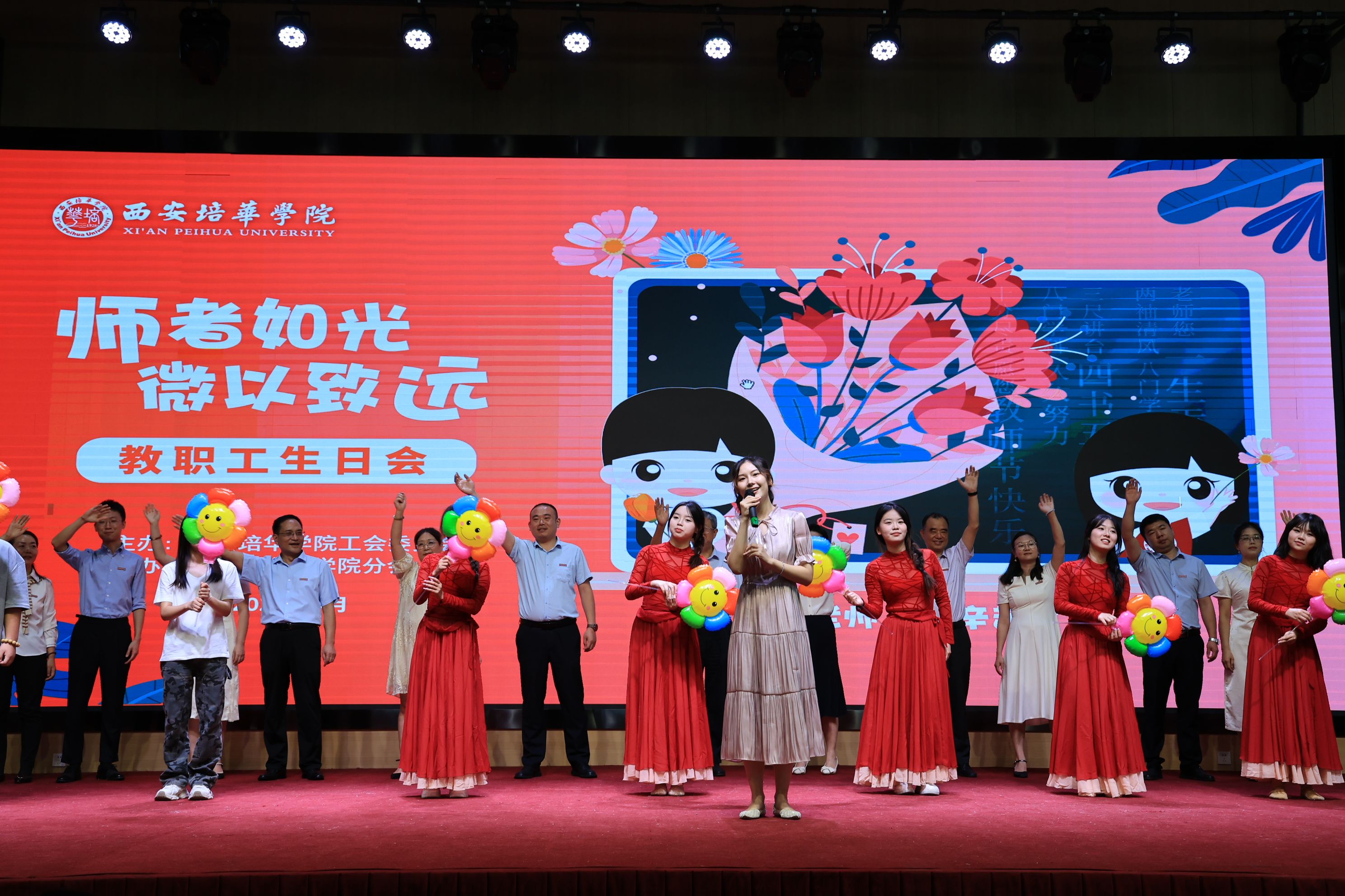 会计与金融学院分会为本次生日会精心准备了精彩纷呈的节目,涵盖了舞蹈、对唱、诗朗诵、独唱等多种形式。特别是教师代表们带来的配乐诗朗诵《致敬老师,致敬培华》,饱含深情的声音让在场教师们深深感受到了作为一名光荣的人民教师、作为培华人的责任感和使命感。