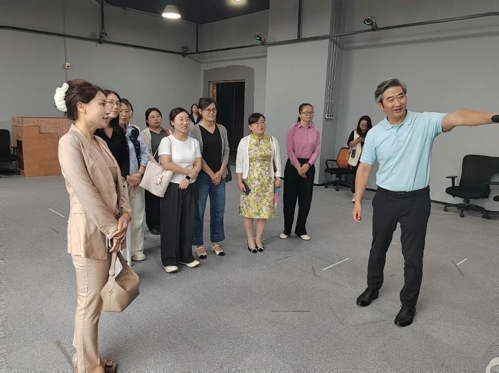 在数字产业园负责人孔啸总经理的介绍下,项目组及学员们参观了数字实训基地及动作捕捉影棚。现场观看了采用动作捕捉技术制作的陕西省重大文化精品工程项目《大唐帝陵》片段,实地了解动捕技术如何将表演者的肢体动作精准转化为数字角色动画。