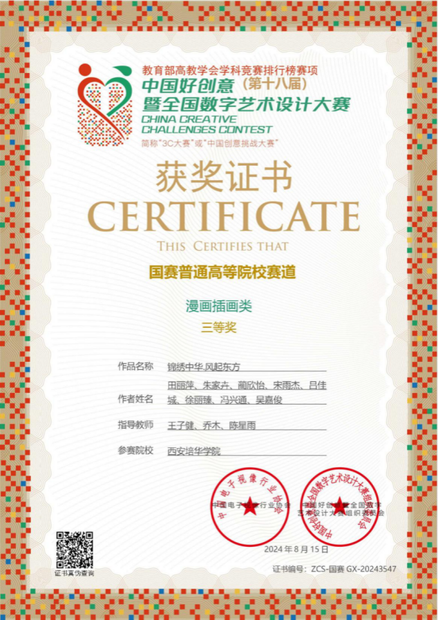 近日,第18届中国好创意暨全国数字艺术设计大赛评审结果公布。传媒与设计学院师生团队成绩喜人,共计获得奖项15项,其中国赛二等奖2项,国赛三等奖2项,省赛一等奖1项,省赛二等奖4项,省赛三等奖6项。