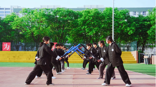 在丁老师的武术短兵课上,同学们能够基本了解武术短兵运动产生和发展的过程,掌握短兵运动的基本理论知识和基本技术;熟练掌握和运用武术短兵运动中劈、砍、斩、刺、格挡等动作技术;通过反复练习提升力量、速度、耐力、柔韧等身体素质;不仅受到武德教育洗礼,还养成了顽强、果敢、坚毅的精神品质。