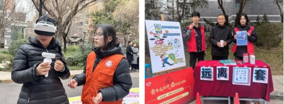 智能科学与信息工程学院开设“银发数字课堂”,现场演示手机安全支付、微信防诈功能,帮助老人掌握智能设备使用技巧。青年志愿者联合会打造“沉浸式禁毒实验室”,通过VR模拟吸毒面部衰老变化、器官损伤可视化展示,让居民直观感受毒品危害。会计与金融学院原创反诈情景剧,还原刷单返利、AI换脸诈骗等新型犯罪手法。