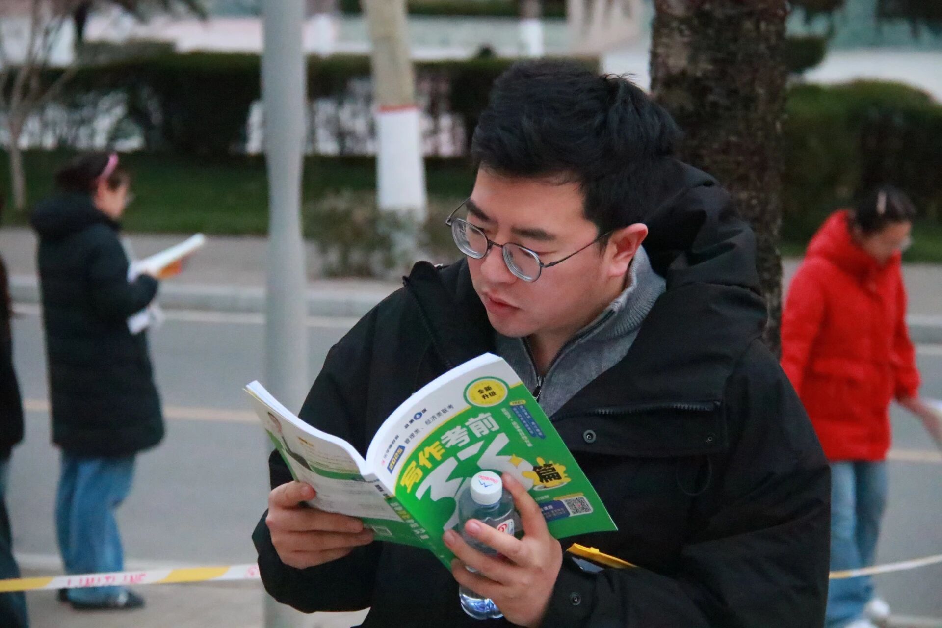 走廊间,台阶旁,有人低头默念,字句铿锵;有人静静合眼,梳理思绪。每一份专注,每一次呼吸,都在为这场奔赴积蓄力量。