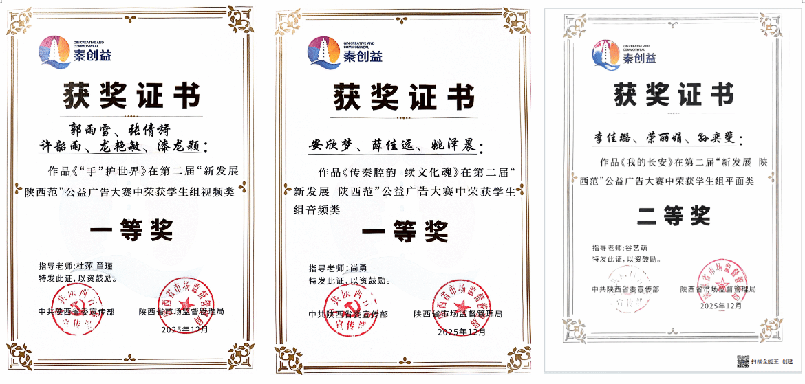 本届大赛由中共陕西省委宣传部、陕西省市场监督管理局联合主办,陕西省公益广告创新研究基地公益广告红色基因传承研究中心和西安培华学院承办。大赛自启动以来,共征集公益广告作品1271组,涵盖社会主义核心价值观、传统文化传承、红色基因、生态环保、食品安全等十大主题。大赛组委会组建专家评审小组,从创意性、表现力、社会价值等多维度综合评定。经过初评、复评、终评三轮严格筛选,最终获奖作品脱颖而出,成为引领社会文明风尚的标杆,也见证了学校在实践教学成果培育、学生专业能力提升、服务地方文化发展的重要引领作用,为高等教育高质量发展助力。