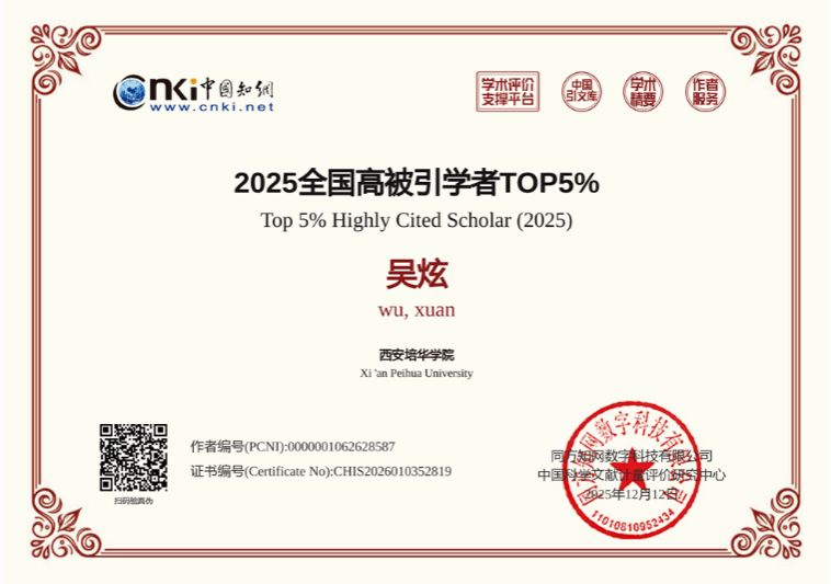 此次入选“全国高被引学者TOP5%”,不仅是对吴炫教授三十余载理论原创工作的高度认可,也彰显了西安培华学院在高层次人才引进与人文社科建设方面的显著成效。学校将以此为契机,鼓励支持吴炫教授开展原创性研究,进一步推动学术创新与学科发展,为构建中国自主知识体系贡献培华力量。