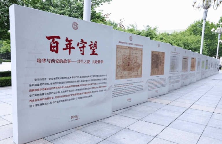 立足新时代教育现代化的历史新征程,多角度、全方位挖掘校史故事,不断扩大“大思政课”广度。围绕红色校史组织师生开展主题班会、专题讲座、社会实践和讲述学校历史上的革命故事、参观红色遗址和纪念馆、开展红色经典诵读、红色歌曲传唱等系列活动,上好“校史文化课”,将校史资源转化为育人优势。 开展寻找“西安地图里的培华”图片展活动,通过收集整理的11幅古城西安市地图,制作宣传展板,追寻西安和培华沧桑巨变的昨天和今天。深挖校史内涵和培华故事,面向社会发出征集校史资源的通知,同时充分发挥老领导、老教师、历届校友及社会各界的力量,广泛收集整理档案、地方志、校友口述、旧报刊等资料,为文化育人提供充足素材。对校史进行系统梳理,通过朋辈讲故事、校史馆参观、编纂校史著作、拍摄百人百事微故事等形式,讲清楚培华先辈爱党爱国、自强不息,执着专注、吃苦耐劳,追求卓越、勇立潮头,精益求精、一丝不苟等精神内核,生动再现学校艰苦创业、开拓进取的办学历程,让“奉献、创新、奋斗”的培华精神深入人心,成为凝聚师生校友情感的价值纽带。