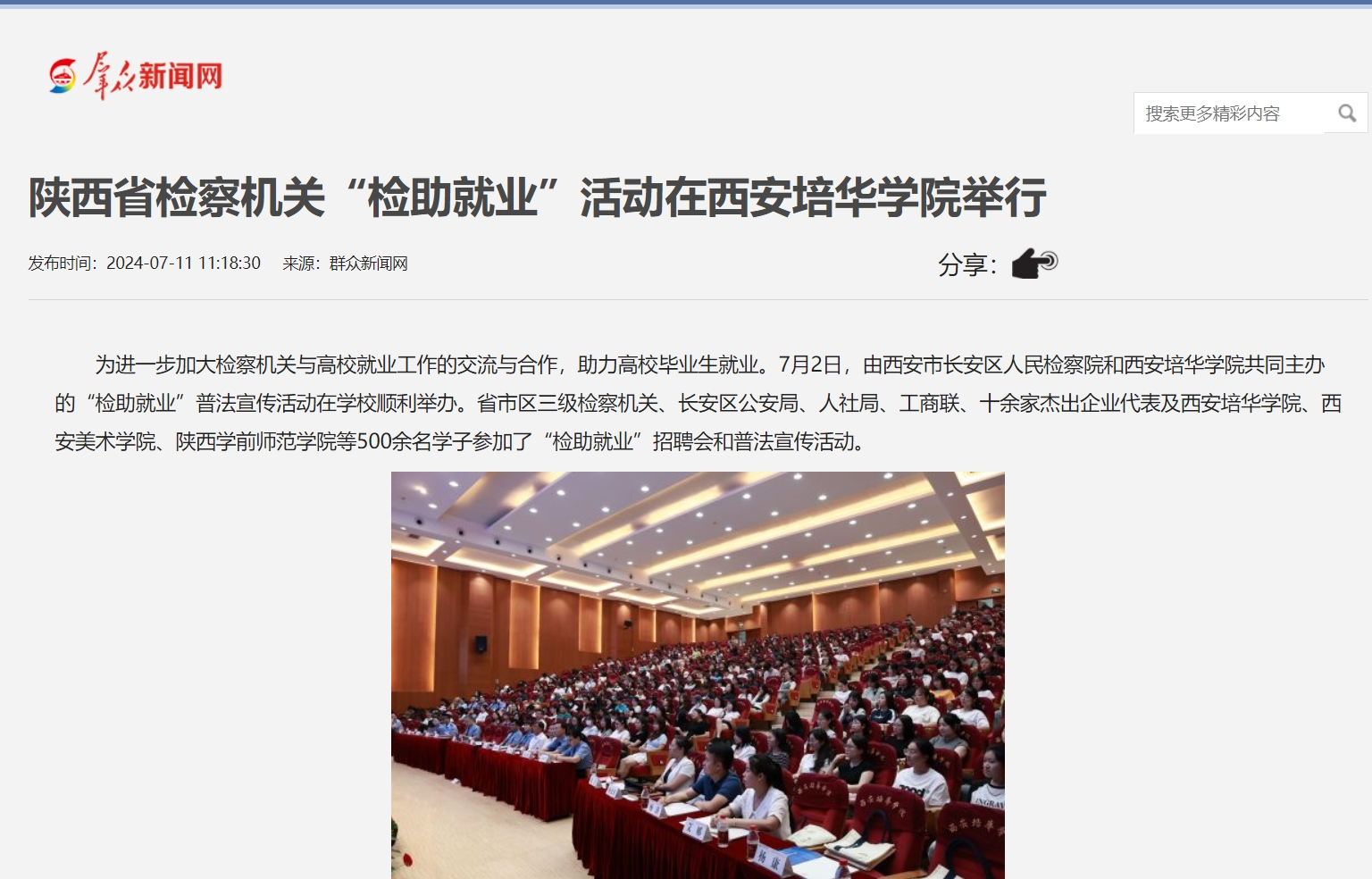 为进一步加大检察机关与高校就业工作的交流与合作,助力高校毕业生就业。7月2日,由西安市长安区人民检察院和西安培华学院共同主办的“检助就业”普法宣传活动在学校顺利举办。省市区三级检察机关、长安区公安局、人社局、工商联、十余家杰出企业代表及西安培华学院、西安美术学院、陕西学前师范学院等500余名学子参加了“检助就业”招聘会和普法宣传活动。