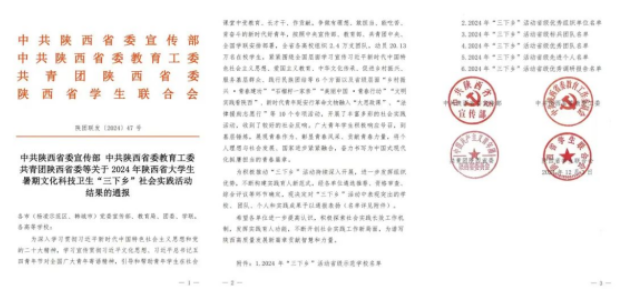 近日,中共陕西省委宣传部、中共陕西省委教育工委、共青团陕西省委、陕西省学生联合会联合印发文件,通报了2024年陕西省大学生暑假文化科技卫生“三下乡”社会实践活动结果,西安培华学院凭借卓越的组织能力荣获多项省级荣誉。