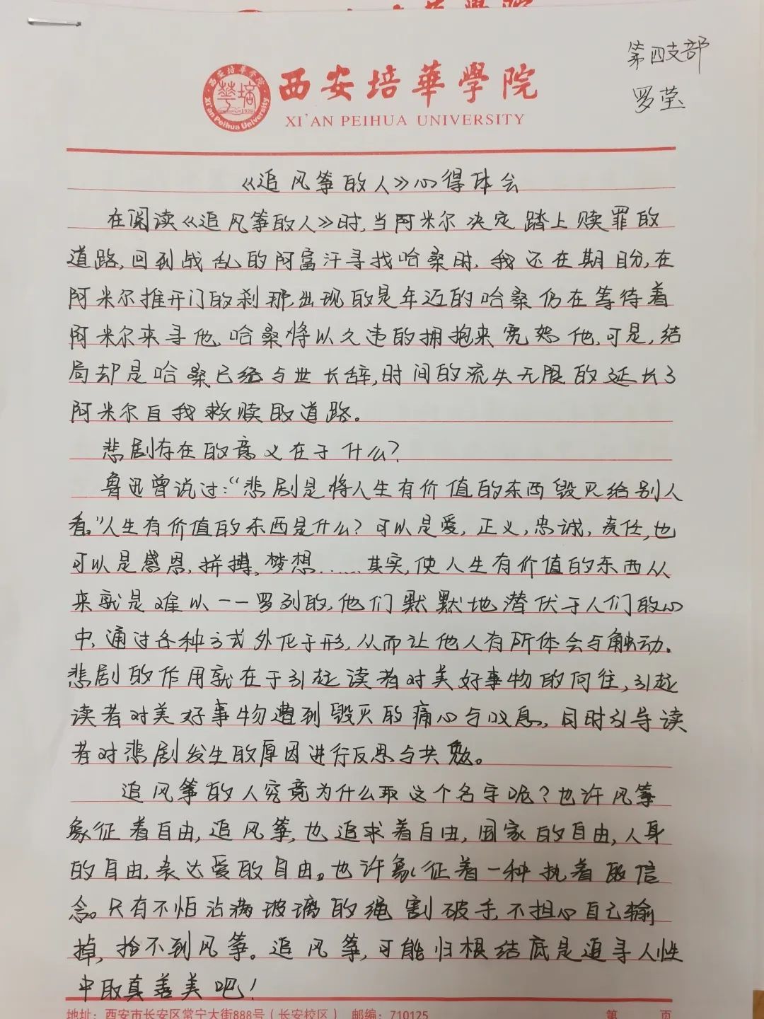 为深入传承中华优秀传统文化,提升自我修养,推进“书香培华”品牌特色的校园文化建设,教育引导学生从中华优秀传统文化中汲取营养和奋进动力。前不久,西安培华学院会计与金融学院党委在各学生支部成员内广泛开展“阅读经典、书香培华”主题读书分享会活动,以达到营造积极向上、健康文明的校园文化氛围。此次“阅读经典、书香培华”读书分享会设立一等奖、二等奖、三等奖及优秀奖,活动形式主要通过写读书笔记或读书心得来分享自己的阅读感受。各学生支部积极参与,踊跃报名,收到了丰富多彩,形式多样的读书笔记,本次活动最终评选出一等奖1名、二等奖3名、三等奖5名、优秀奖10名,选取了部分佳作向大家展示,让我们一起来看看吧!