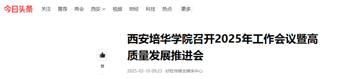 3月7日,西安培华学院召开2025年工作会议暨高质量发展推进会。本次会议旨在深入贯彻全国、全省教育大会精神,全面部署学校2025年工作,为学校百年华诞和“十五五”规划谋篇布局、打牢基础。全体校级领导、行政部门主管岗位以上人员,二级学院院长、副院长、院长助理,党委书记、副书记、办公室主任、系主任、专业带头人等170余人参加会议。