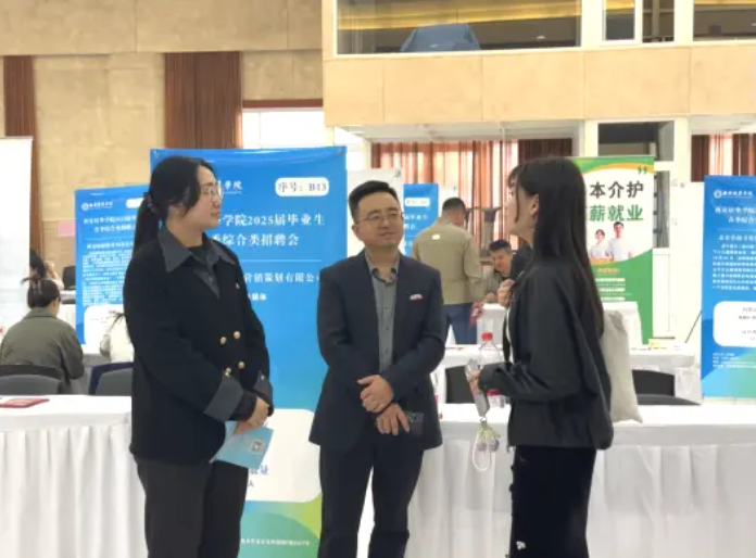 招聘会现场气氛热烈,秩序井然。学校领导高度重视毕业生就业工作,西安培华学院招生与就业指导中心主任姚斌、副主任王雪到现场进行指导,各二级学院相关领导和辅导员一同参加,与用人单位代表深入交流,精准把握行业人才需求趋势。
