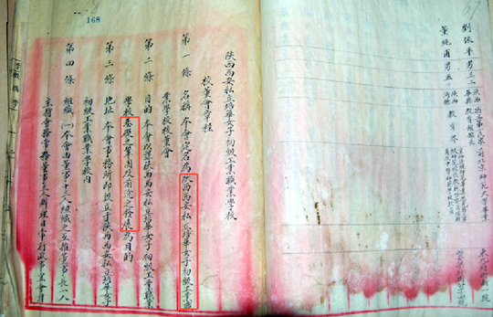 培华女职校董会章程中记录学校名称,“培华”,意在强调“巩固之基础,前途之发展”的办学理念