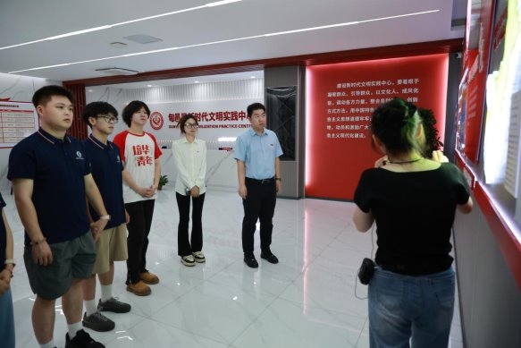 随后,共青团旬邑县团委带领明法夏日实践队一行前往新时代文明实践中心参观走访,通过讲解,队员们更加深入学习领会党的创新理论,正确引领大家在“学思想”中坚定理想信念,在“强党性”中擦亮青春底色,在“重实践”中挺膺担当,在“建新功”中放飞梦想,为谱写推进中国式现代化建设贡献青春力量。