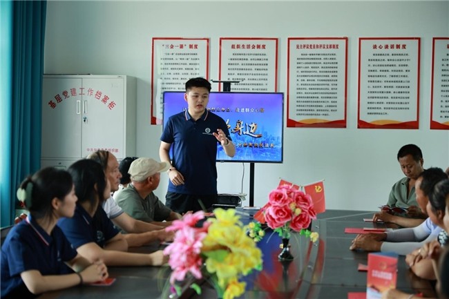 2025年是《中华人民共和国国家安全法》颁布实行十周年,也是全民国家安全教育走深走实的第十年,成员刘少奇以身边真实案件为例,深入浅出的解析《中华人民共和国反间谍法》,他认真向村民讲解“一张随手拍下的照片、一次热情的帮忙、一个普通的链接,这些看似平常的举动都有可能威胁到国家安全。”这一词一句引起了村民们守护家园安宁的共鸣。