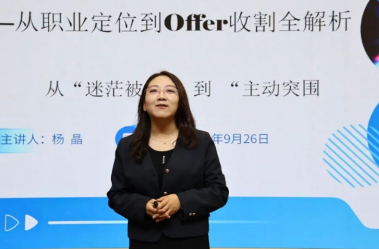 就业指导师、人力资源专家杨晶为大学生进行就业创业指导讲座,帮助学生规划职业道路,提升就业创业能力