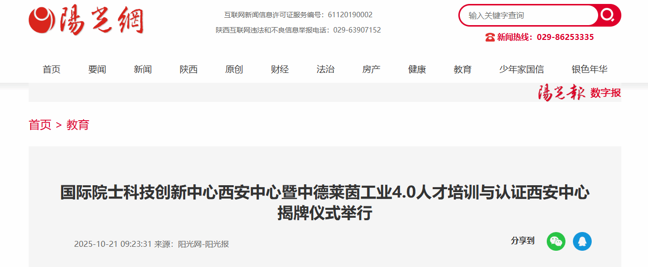 陕西省工业和信息化厅二级巡视员羌薇指出,两个中心精准把握产业“痛点”,以“国际院士科技创新中心西安中心”提供国际智慧破解“卡脖子”难题,“中德莱茵工业4.0人才培训与认证西安中心”输送技术尖兵支撑智能制造,形成“智力+技能”双轮驱动。省工信厅将全力支持中心发展,搭建对接桥梁,提供资源保障,期待其成为全省产教融合的示范标杆和服务阵地。