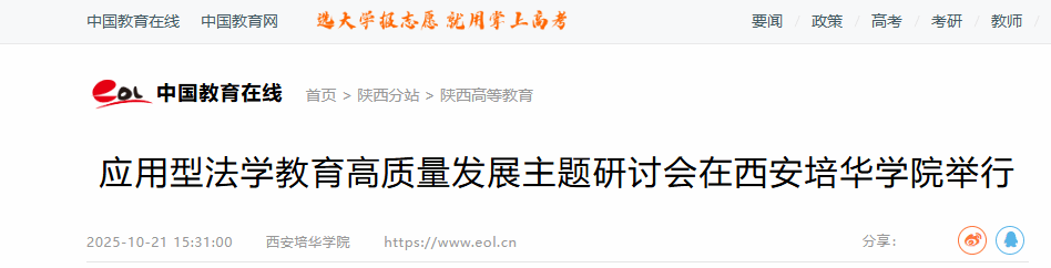 10月18日,应用型法学教育高质量发展主题研讨会暨2025年全国应用型高校法学教育协作机制年会在西安培华学院举行。本次会议由全国应用型高校法学教育协作机制主办,西安培华学院承办,中国政法大学出版社、杭州法源软件开发有限公司以及深圳市亚讯威视数字技术有限公司协办,吸引了来自全国30余所高校的多位专家学者齐聚一堂。