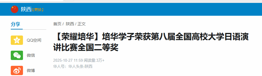 10月17日至18日,由教育部高等学校大学外语教学指导委员会日语组和全国高校大学日语演讲比赛组委会共同主办的第八届全国高校大学日语演讲比赛在大连外国语大学落下帷幕。西安培华学院文学院2024级张子坤同学凭借扎实的语言功底与出色的思辨能力,荣获全国二等奖。