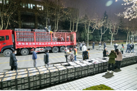 西北大学购入近70000斤苹果,在元旦当天为全体在校生、学校防控一线工作人员每人发放约3斤,祝福新年“平平安安”。