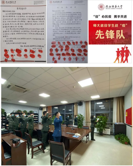 当陕西师范大学抗疫者迷彩先锋队的招募公告在退役大学生士兵群里发布后,47条热血回复,随即刷满整个屏幕,队员们连夜写下“请战书”,按下鲜红的手印,立下“退役不褪色,战‘疫’护长安”的铮铮誓言,陕师大退役大学生战“疫”先锋队火速集结成立。