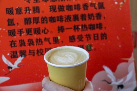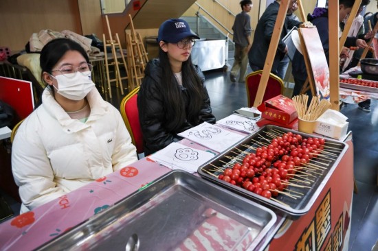 活动创新融合传统与创意,设置多个特色集市区域:书法集市中墨香四溢,同学们挥毫写下寓意吉祥的对联;投壶、套圈等趣味游戏让节日快乐翻倍;糖葫芦制作、咖啡体验区则充满烟火气;劳动教育成果集市里,同学们现场分发亲手种植的青菜;民族体验区更让师生近距离感受少数民族传统文化魅力。