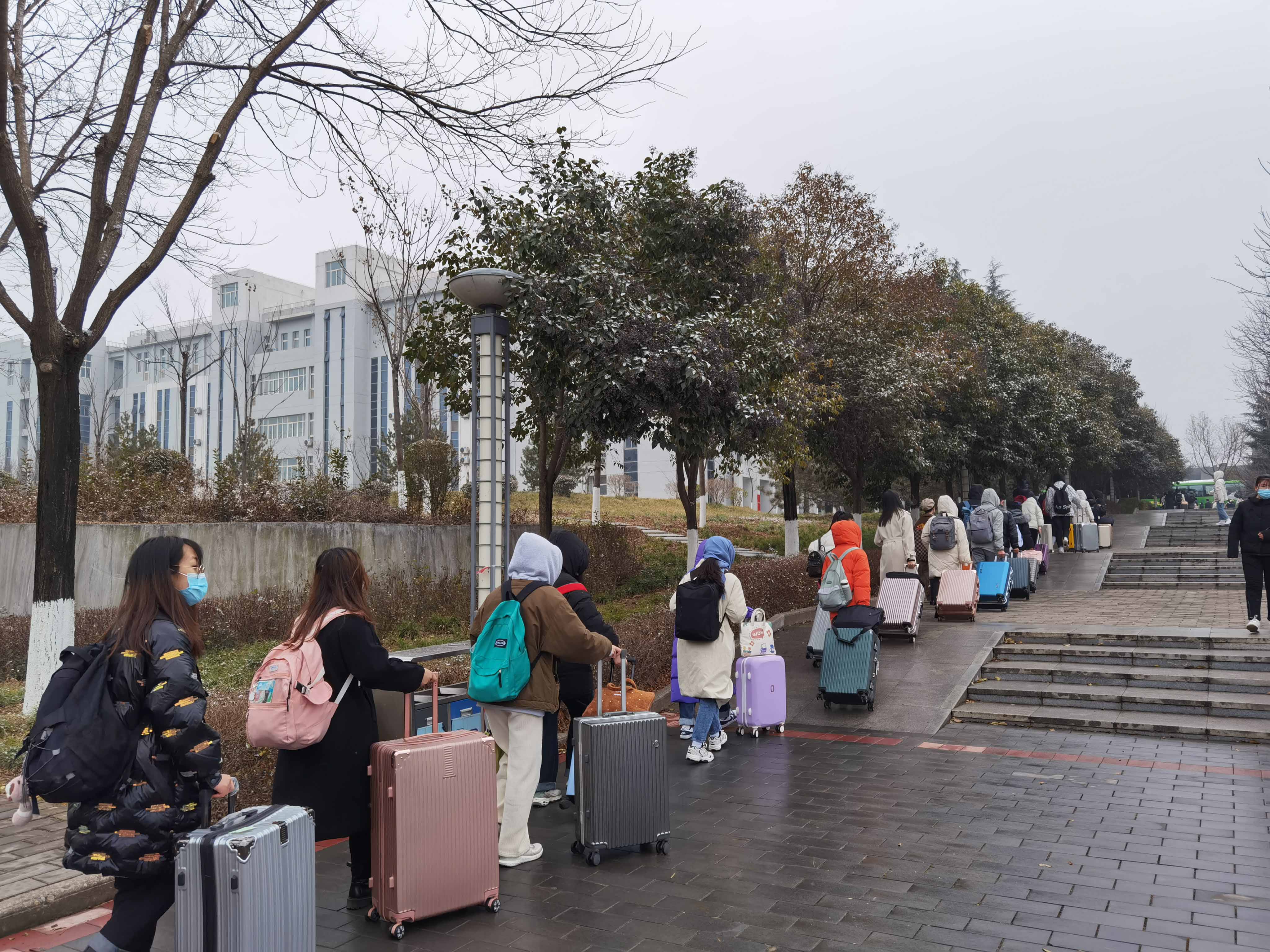 受疫情影响,我区20所高校都实施封闭管理,临近春节,部分高校省内学生也开始分批、错峰离校。1月21日,陕西学前师范学院长安校区和西安培华学院两所高校学生乘车离校返乡。