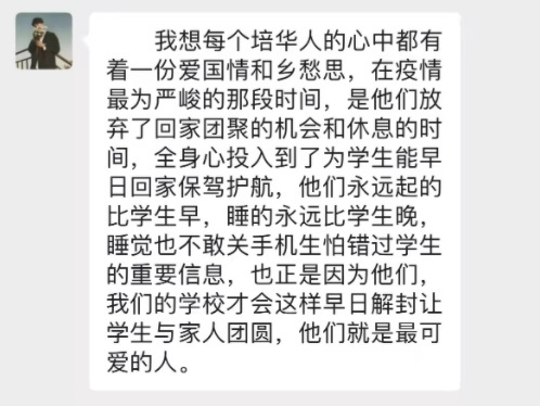 1.20日已有第一批居住西安市的同学顺利到家,同学们回家后给自己的老师们报平安,纷纷表达感谢学校安排专车送他们回家,心里很温暖,此刻唯有寄语来表达对母校的感恩。