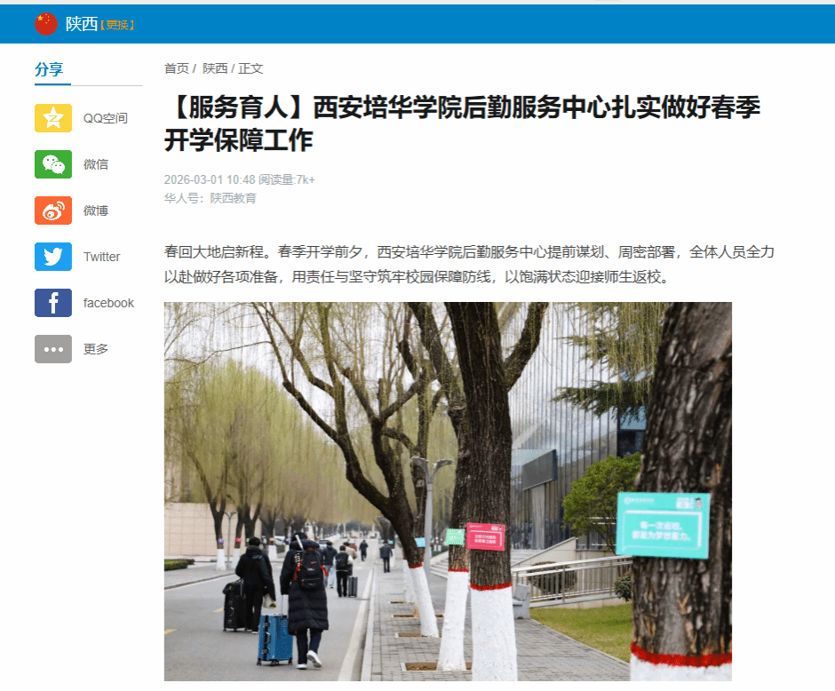 春回大地启新程。春季开学前夕,西安培华学院后勤服务中心提前谋划、周密部署,全体人员全力以赴做好各项准备,用责任与坚守筑牢校园保障防线,以饱满状态迎接师生返校。
