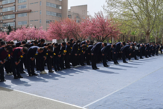 敬献花篮结束后,全体人员肃立,行三鞠躬礼,致敬老校长兴学育才之功、初心不改之德、精神永续之志。