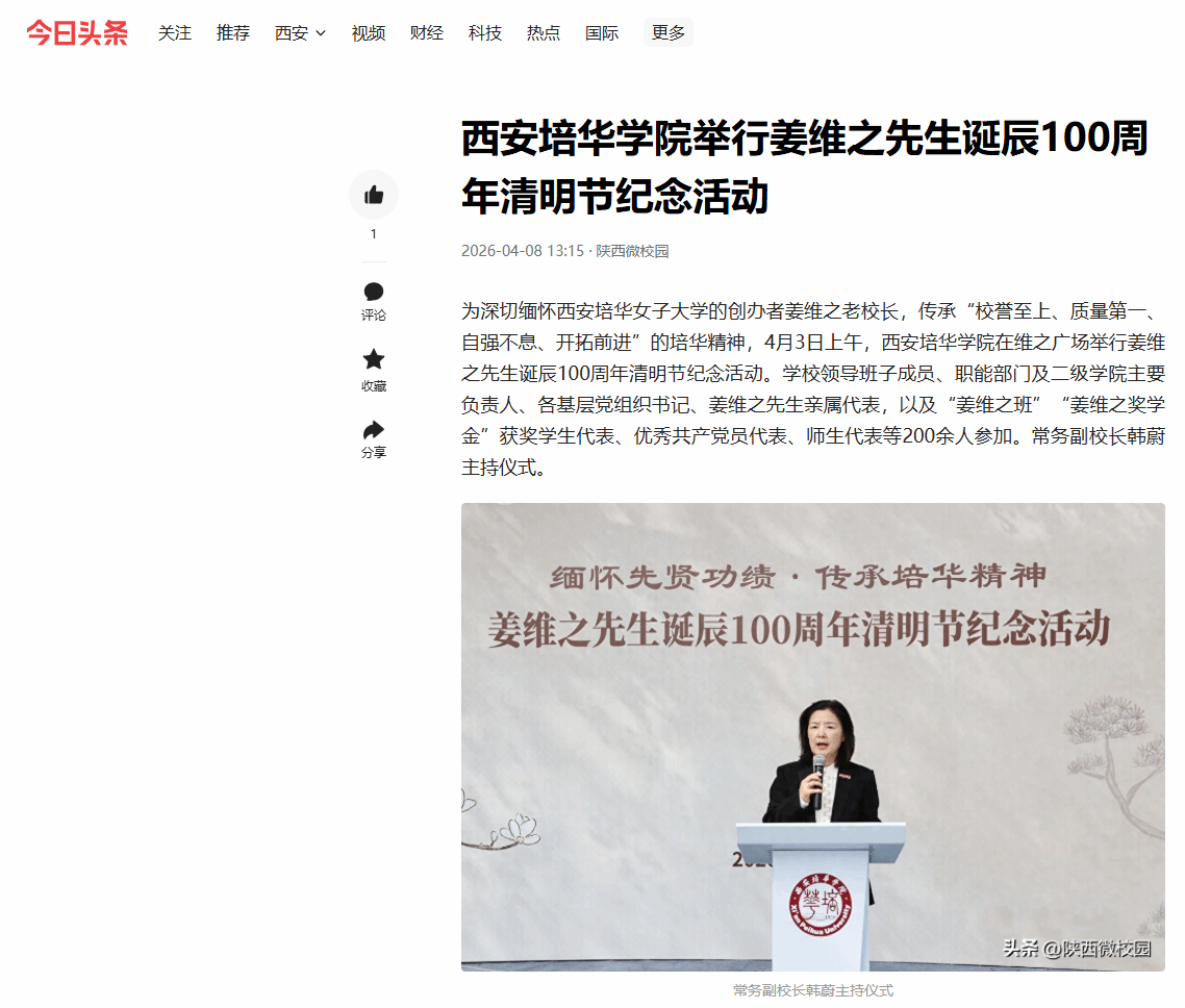 百年薪火,赓续不绝;教育报国,初心如磐。姜维之先生以一生践行 “人生的价值在于奉献” 的崇高信念,其精神早已沉淀为培华最深厚的文化基因,融入一代代培华人的血脉肌理。站在新的历史坐标上,西安培华学院始终以先生精神为指引,锚定 “强本申硕” 高质量发展航向,在民办高等教育的沃土上深耕细作、笃行不怠。全体培华人将以此次百年诞辰纪念活动为新的契机,承先生之遗志、扬奋进之风帆,在建设特色鲜明的高水平应用型民办大学的征程上勇毅前行,为中国高等教育事业的蓬勃发展注入更多培华力量、贡献更多培华智慧。