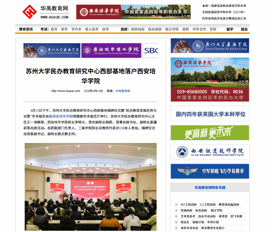 此次西部基地揭牌与学术报告会的成功举办,不仅为学校搭建了更高层次的学术研究平台,更为服务西部民办教育高质量发展注入了新的智库动能。西安培华学院将以基地为纽带,依托苏州大学民办教育研究中心的学术优势,整合校内外研究资源,聚焦西部民办教育改革发展的重点难点问题,扎实开展政策研究、案例分析和成果转化,全力打造立足西部、服务全国、特色鲜明的高水平民办教育研究高地,将以“强本申硕”战略为牵引,把基地建设与高质量发展深度融合,为我国民办教育事业的改革创新和持续繁荣贡献培华智慧与力量。