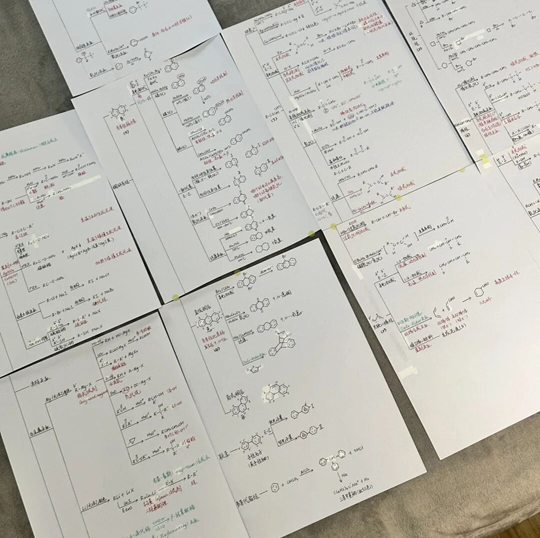刘丹丹没有敷衍,而是真正沉下心来,认真打磨每一张思维导图。“她做的不是简单的抄书式导图,而是每一章都先梳理核心反应类型,用不同颜色的分支标注电子流向、断键成键位置及立体化学变化,并将容易混淆的机理放在一起对比。”刘荣利老师回忆道。