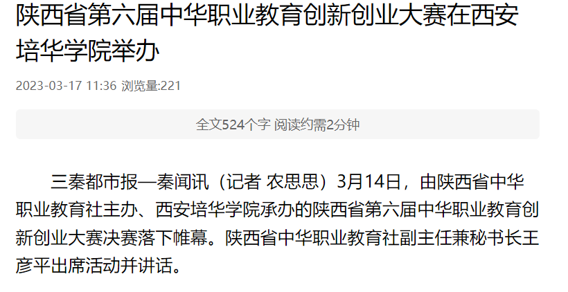 三秦都市报—秦闻讯(记者 农思思)3月14日,由陕西省中华职业教育社主办、西安培华学院承办的陕西省第六届中华职业教育创新创业大赛决赛落下帷幕。陕西省中华职业教育社副主任兼秘书长王彦平出席活动并讲话。