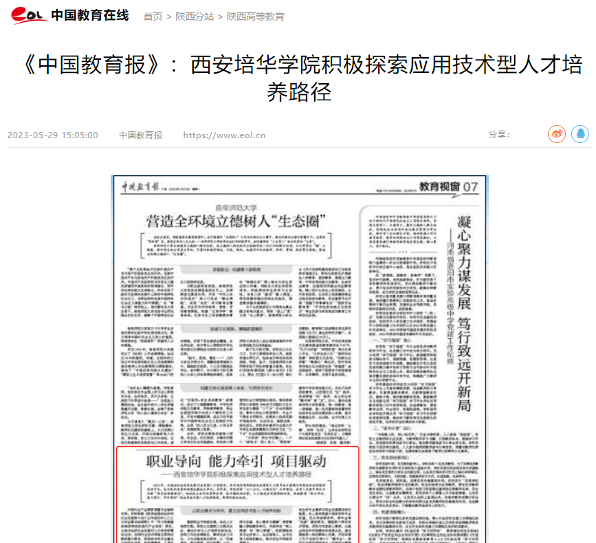 2014年,为适应社会经济发展对应用型人才的需求,西安培华学院积极响应国家大力倡导地方普通本科高校向应用型转变的号召,成为陕西省首批转型发展试点单位。多年来,学校坚持“以人为本,以德为先”办学理念,在育人实践中传承与创新“黄炎培职教理念”,依托校企共同体资源共享、协同增效的优势,大力推进应用型课程改革,积极探索“职业导向、能力牵引、项目驱动”的应用技术型人才培养路径,取得阶段性成效。