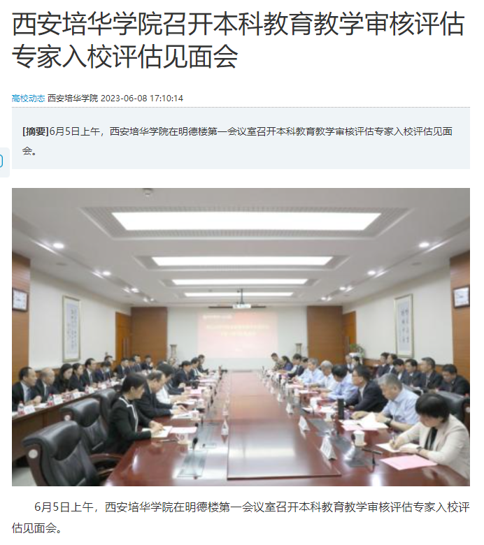 6月5日上午,西安培华学院在明德楼第一会议室召开本科教育教学审核评估专家入校评估见面会。
