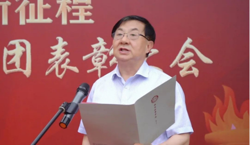 校长李映方教授致辞。他讲到,2023年是全面贯彻落实党的二十大精神的开局之年,是共青团紧跟党迈上新的百年青春征程的起步之年。同时2023年也是培华建校95周年,95年前西安第一平民女子职业学校在古城西安创立,从此培华精神便在这片大地上扎根并蔓延开来,一代代培华青年用实践担当书写着培华故事,传承着培华精神,在祖国发展建设的各行各业接续奋斗,奉献青春力量。今天,我们在这里举行西安培华学院共青团表彰大会暨火炬传递仪式,展现培华青年奋发进取、昂扬向上的精神风貌,也激励广大青年以饱满的精神状态投身于中国特色社会主义建设。愿全体培华青年挺膺担当、奋力奔跑,在建设社会主义现代化强国的火热实践中书写无愧于人生的时代华章。