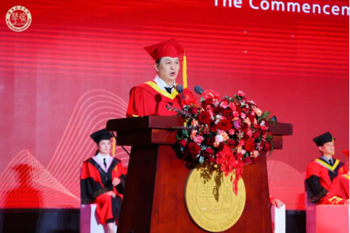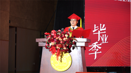 会计与金融学院副院长孟君教授作为教师代表上台发言,她寄语毕业生:期望每一位毕业生走进社会都能堂堂正正做人,踏踏实实做事,为人老实,说话诚实,做事务实,坚守“温良恭俭让,仁义礼智信”,做一个诚实守信、心存感激的人。也希望同学们时刻提醒自己,合理安排时间,在身体可承受的范围内,更加努力地工作、读书、奋斗以及锻炼身体,持续提升自己的沟通能力、写作能力、演讲能力、合作能力以及管理能力,这不是为了通过一场考试,而是为了打造自身的综合能力。