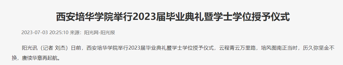 阳光讯(记者 刘杰)日前,西安培华学院举行2023届毕业典礼暨学士学位授予仪式,云程青云万里路,培风图南正当时,历久弥坚金不换,赓续华章再起航。