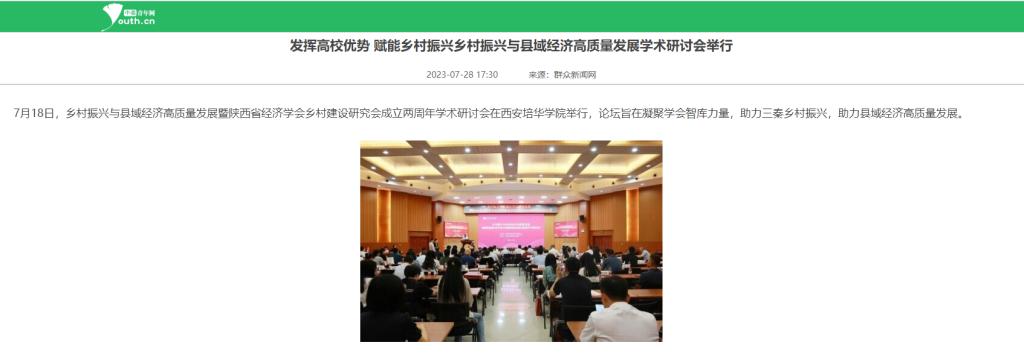 7月18日,乡村振兴与县域经济高质量发展暨陕西省经济学会乡村建设研究会成立两周年学术研讨会在西安培华学院举行,论坛旨在凝聚学会智库力量,助力三秦乡村振兴,助力县域经济高质量发展。