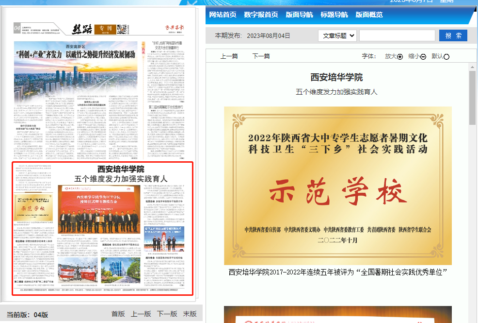 近年来,西安培华学院充分关注大学生的成长成才规律和教育教学活动规律,以服务学生的社会化成长为目标,重点从实践教学、第二课堂、社会实践、社团活动以及志愿服务等五个维度发力,积极构建实践育人体系,淬炼学生的综合素质,促进学生德智体美劳全面发展。