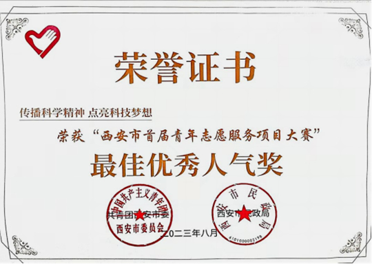 大会揭晓了西安市首届青年志愿服务项目大赛评选结果,西安培华学院青年志愿者联合会申报的《以青春之名“培”你健康成长》、红十字会学生分会申报的《聚爱三秦“救”在身边》和智能科学与信息工程学院团委申报的《传播科学精神点亮科技梦想》分别斩获银奖、铜奖和最佳优秀人气奖。