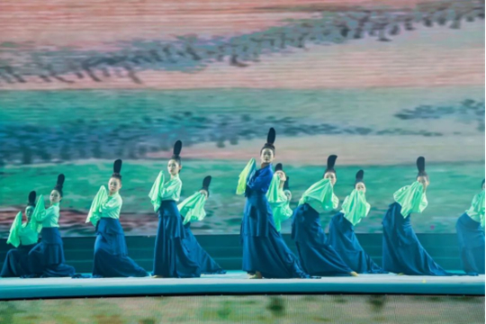 舞低杨柳楼心月,歌尽桃花扇底风用舞台重现大宋美学,连接千年静与动,为观众开启沉浸式“赏画”体验。
