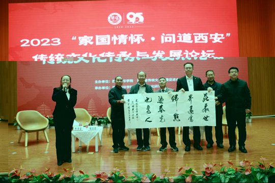 主旨论坛发言嘉宾集体向主办方西安培华学院赠送书法作品