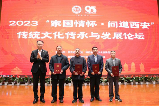 姜波理事长为丁茂战、曾业松、周高德、谭绍堂等5位专家颁发西安培华学院中华传统文化研究院顾问聘书