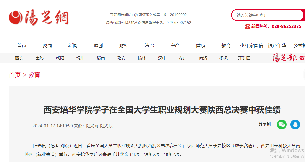 本次大赛以“筑梦青春志在四方,规划启航职引未来”为主题。陕西省93所高校的39.5万余名学生参与了大赛,最终有200名选手入围省赛。决赛分为现场陈述、评委提问(综合面试)、“天降(实习)offer”等多个环节,经过激烈的角逐,学校人文与国际教育学院卜晓婷同学获得成长赛道高教组决赛金奖、人文与国际教育学院赵晨阳同学获得就业赛道高职组决赛银奖、医学院燕心雨同学获得成长赛道高教组决赛银奖、传媒学院张欣同学获得就业赛道高教组决赛,总成绩在全省同类院校中位列第一,晋级名额及奖牌数量,在同类院校中位列第一。