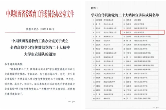 凭着日常的积累与探索,他掌握了大量的演讲技巧,通过院级、校级、省级层层选拔,最终入选陕西省大学生二十大精神宣讲团,走上西安交通大学的宣讲舞台,为全省青年学子传播二十大声音。