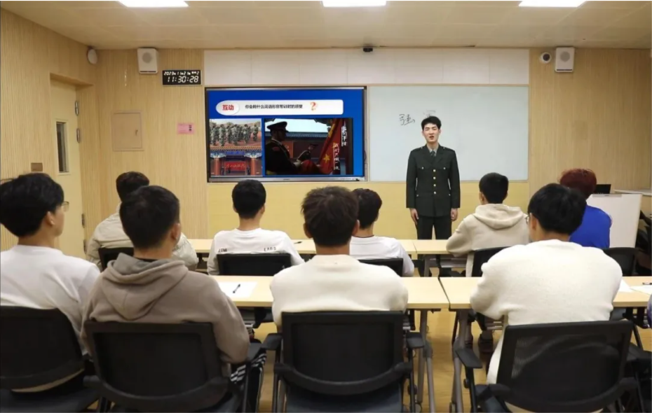 退伍刚“满月”的刘承俊受思政课教师袁娜邀请,一身戎装走进课堂向在校学生分享从军经历和习近平强军思想,这种同辈分享的形式,不仅打破了传统思政课的模式,更以其真实和贴近生活的情感,赢得了在场学生的阵阵掌声和好评。