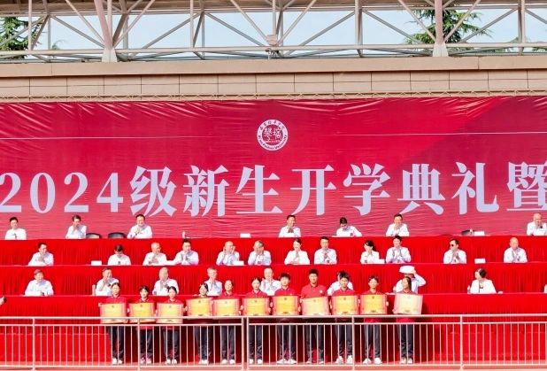随着国旗护卫队队员们矫健的步伐,大会在雄壮的国歌声中拉开帷幕。五星红旗冉冉升起,全体师生面向国旗行注目礼。那一刻,爱国之情油然而生。校歌随后响起,铿锵有力的歌声在校园里回荡,激励着每一位新生以更加饱满的热情,投入到未来的学习生活中。