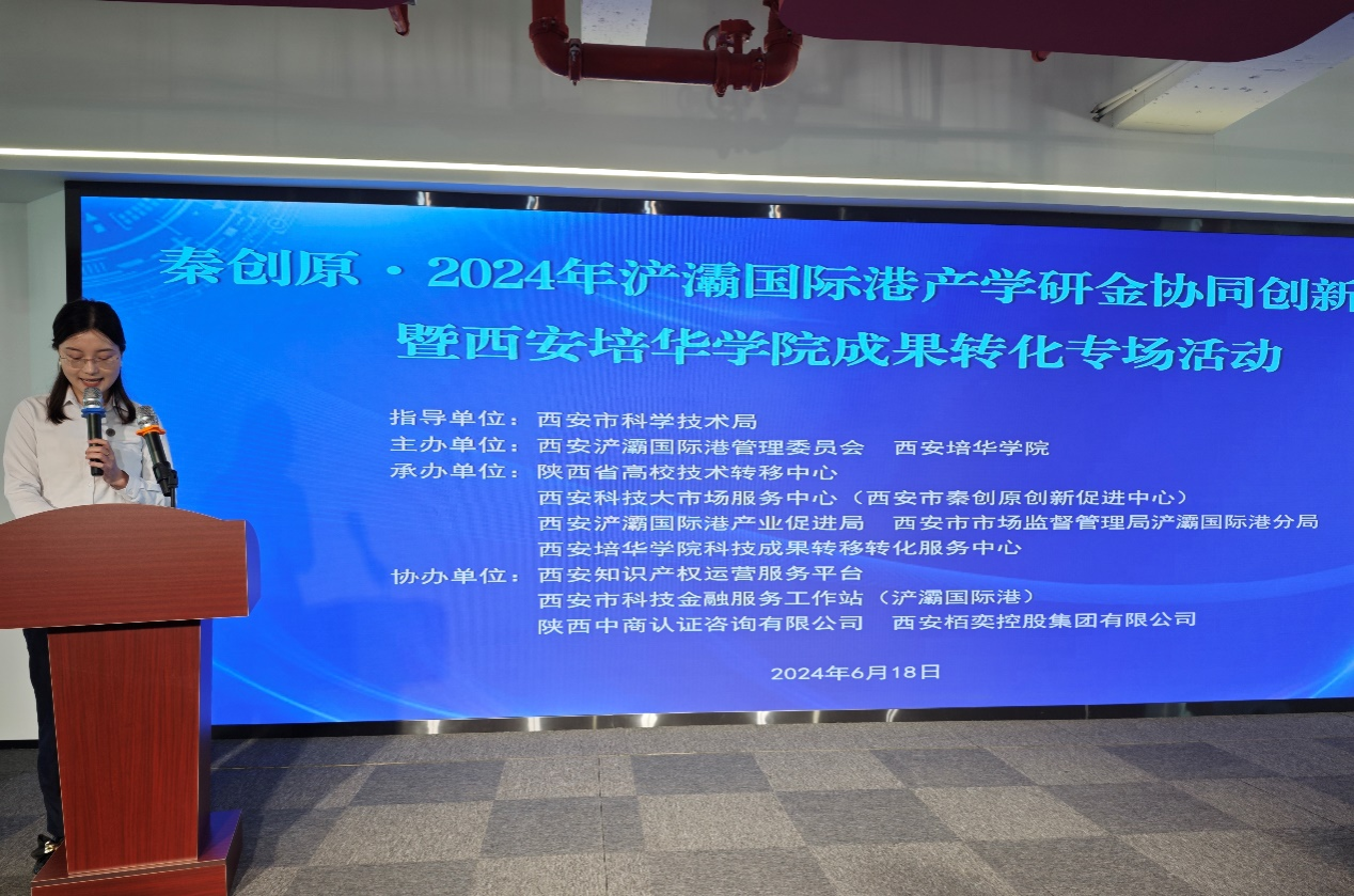 为助推产学研成果落地转化,加速秦创原创新驱动平台建设,6月18日下午,秦创原·浐灞国际港产学研金协同创新系列暨西安培华学院成果转化专场对接活动在陕西数字出版基地路演厅举行。