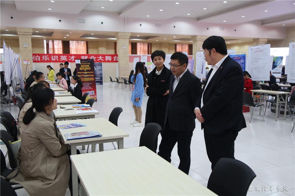 在我校党委副书记、副校长姚文静、招生与就业指导中心主任鲍伟、副主任王琳的陪同下,陕西省教育厅学生处唐澍处长莅临我校招聘会现场指导工作
